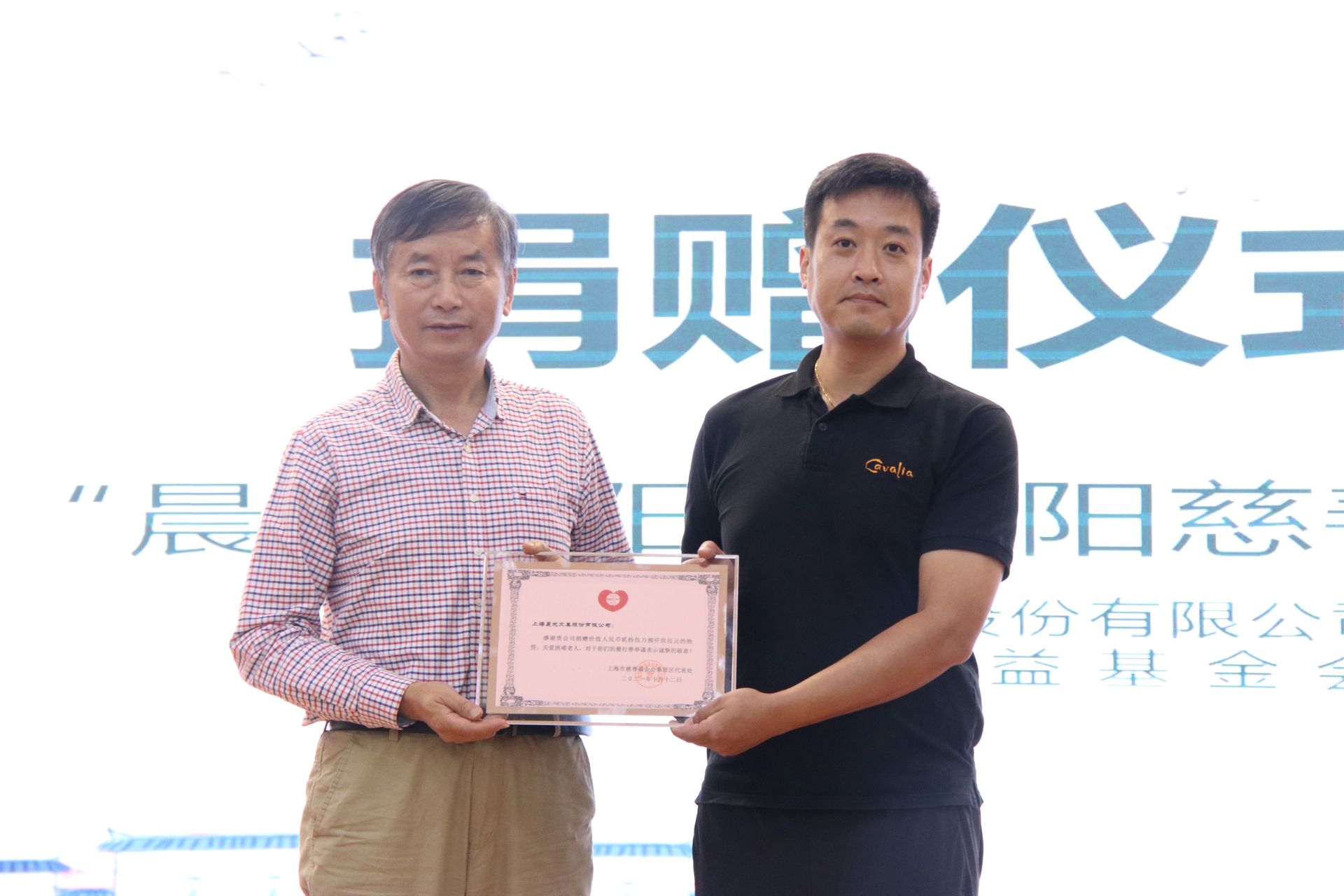 上海市慈善基金會奉賢區代表處副會長戚愛國向晨光公益基金會頒發捐贈證書