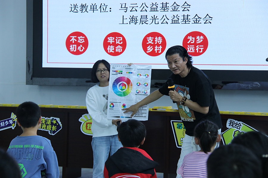 晨光公益基金會多年來攜手馬云公益基金會參與鄉村教育,這次也特地由兒童美術事業部吳鈞老師給鄉村的孩子帶來一堂精彩有趣的創意美術課。