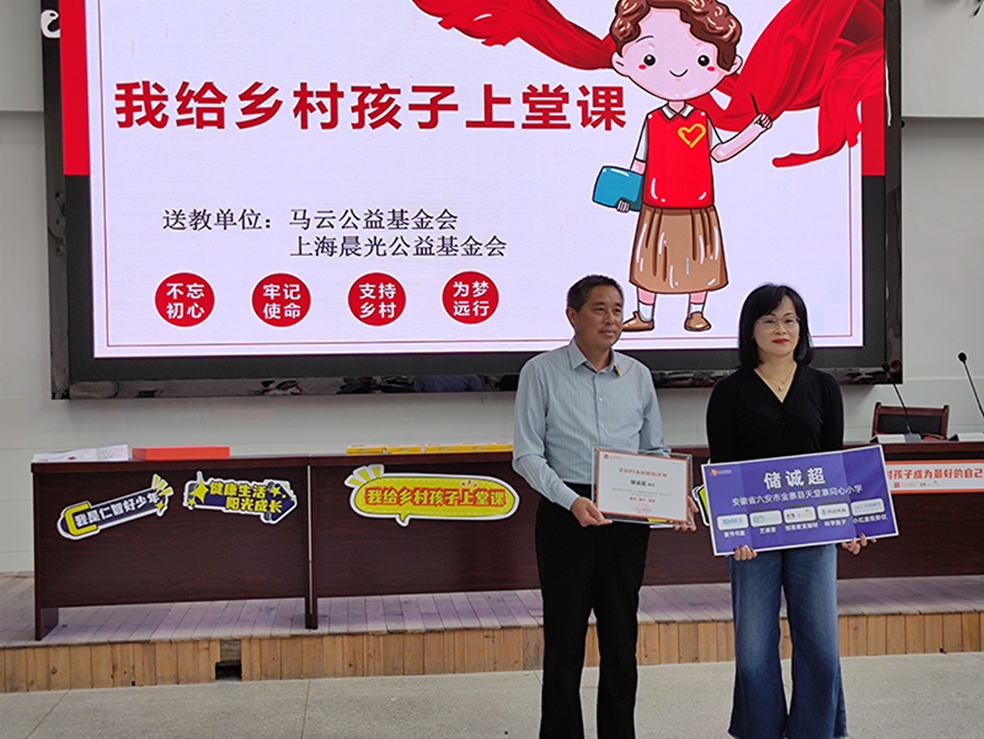 9月14日,上海晨光公益基金會一行前往安徽省金寨縣天堂寨同心小學向入選馬云鄉村校長計劃的儲誠超校長送上一份大驚喜,同心小學是一所半寄宿制學校,學校身處金寨山中,儲校長多年來奉獻鄉村教育,積極為孩子爭取優質的教育資源,讓孩子得以看見大山以外的世界,其優秀的教學理念與做法讓他獲得了2021年度馬云鄉村校長計劃。