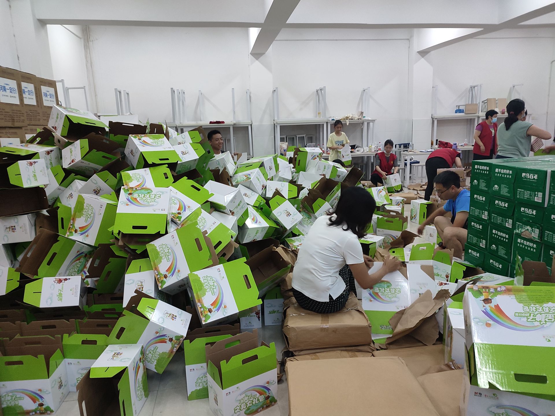 志愿者們分裝慰問物資