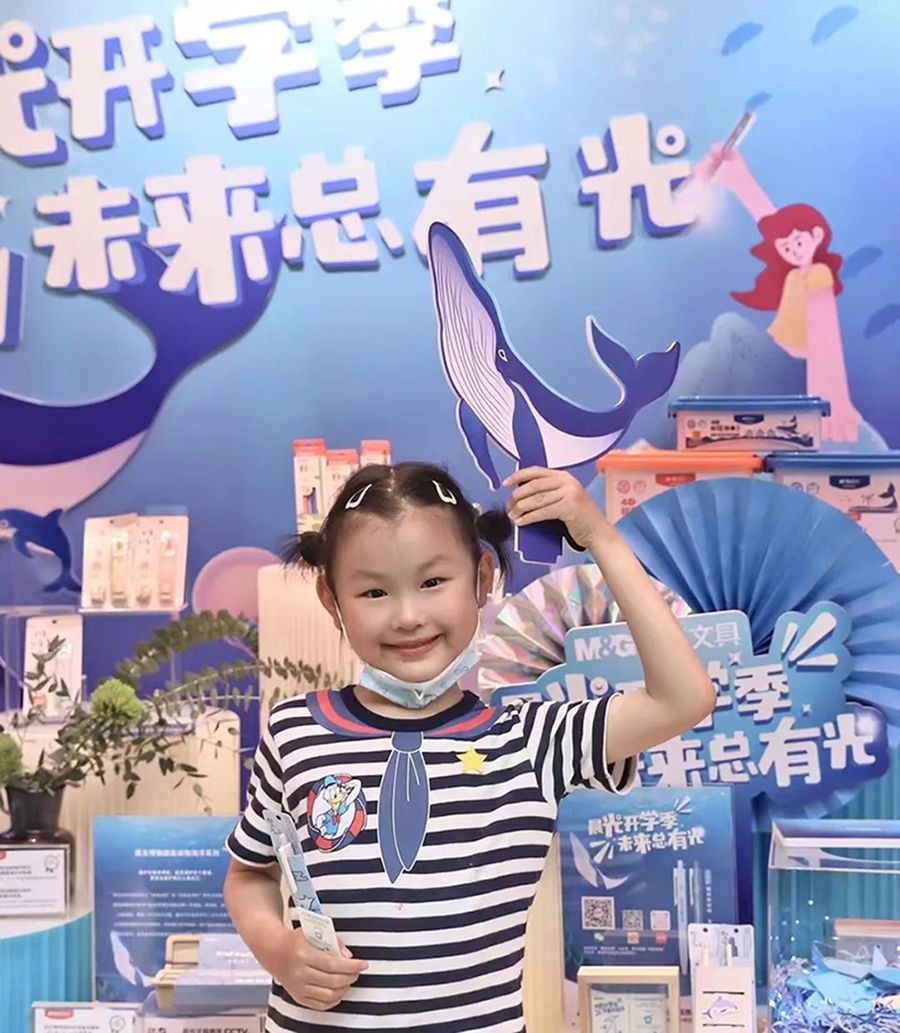 推動可持續發展不僅僅停留在產品本身,在如何引導行業及大眾深入了解、參與可持續上,晨光也做了很多嘗試。在佳品匯現場,晨光以寓教于樂的形式倡導大眾保護海洋環境、呵護瀕危動物:觀眾在折紙上用植物殘渣中性筆寫下綠色宣言,將其折為鯨魚模樣投入藍色夢想箱,同時在社交平臺上帶話題打卡,即可獲得海洋書簽等精美禮品。