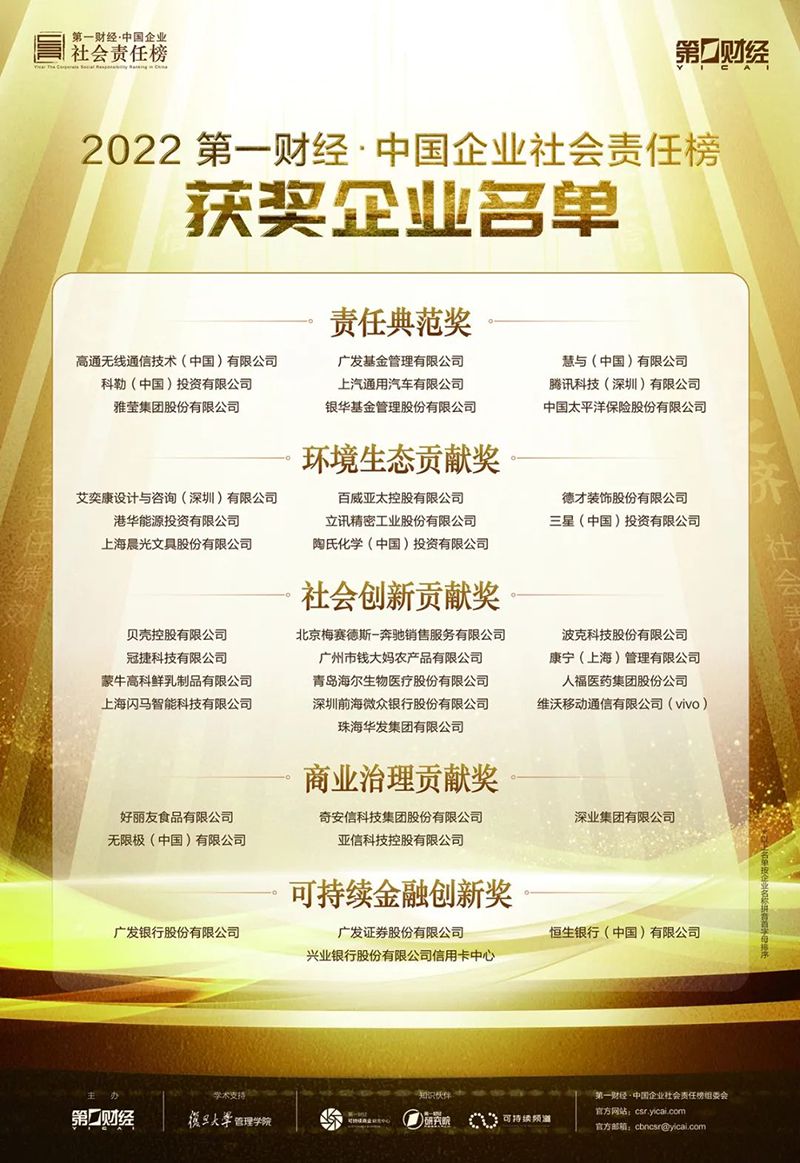 發(fā)布日期:2022-12-292022年12月,“2022第一財(cái)經(jīng)·中國(guó)企業(yè)社會(huì)責(zé)任榜”頒獎(jiǎng)盛典于上海圓滿落幕。作為國(guó)內(nèi)文具行業(yè)唯一代表,晨光憑借在可持續(xù)發(fā)展各方面的出色表現(xiàn),榮獲“2022第一財(cái)經(jīng)·中國(guó)企業(yè)社會(huì)責(zé)任榜”環(huán)境生態(tài)貢獻(xiàn)獎(jiǎng)。