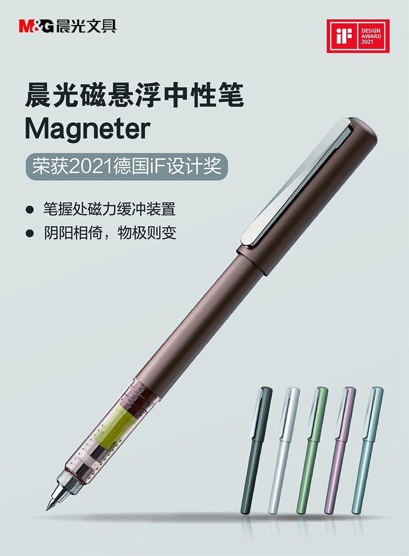 多年來,晨光堅持自主研發(fā)和設(shè)計創(chuàng)新,并始終把用戶痛點作為驅(qū)動力,每年投入超1億元人民幣用于技術(shù)研發(fā)和產(chǎn)品創(chuàng)新,目前已擁有專利1000余項。產(chǎn)品設(shè)計包攬國際四大工業(yè)設(shè)計獎,彰顯了晨光國際一流的設(shè)計實力,如晨光為本次大會嘉賓提供的磁懸浮緩沖中性筆,首創(chuàng)性在筆握處加入"同極相斥"磁力緩沖裝置,緩解書寫壓力并保護筆頭,并憑此創(chuàng)新設(shè)計斬獲2021德國iF設(shè)計獎。
