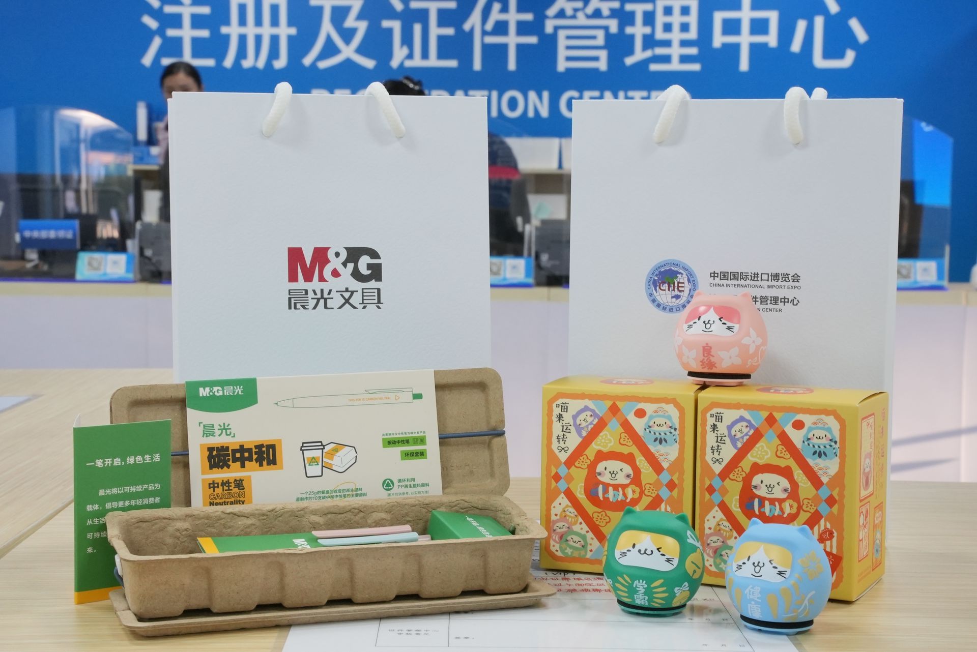 作為全球最大的文具制造商之一,晨光已連續(xù)六年為進博會提供高品質(zhì)專業(yè)辦公文具支持。今年,晨光為進博新聞中心、注冊及證件管理中心帶來更具創(chuàng)意的定制禮盒、書寫工具、本冊等數(shù)十款顏值實力兼?zhèn)涞奈木哂闷罚渲?span style="color:#8EC965;">首款碳中和文具定制禮盒更是以綠色創(chuàng)新理念積極助力“綠色進博”。