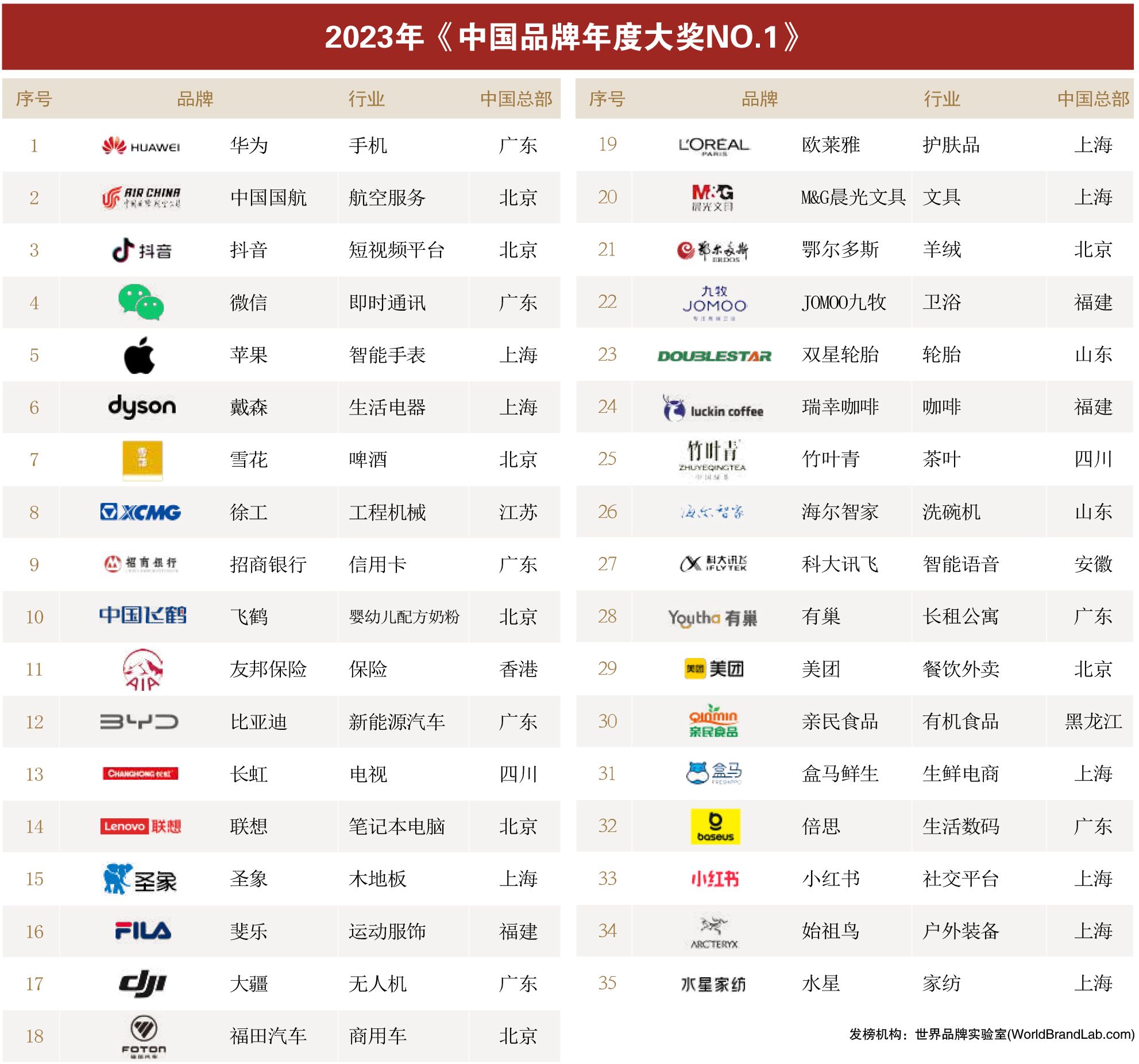 2023年,通過深入調查和分析100多個行業的近3000個品牌的消費偏好,世界品牌實驗室最終選出華為、飛鶴、大疆、晨光、美團等35個活躍在中國經濟舞臺的領軍品牌,共同榮獲“2023年中國品牌年度大獎NO.1”。這不僅是國際專業機構對晨光品牌價值的持續肯定和認可,更彰顯了晨光行業領導力和不斷提升的全球品牌影響力。