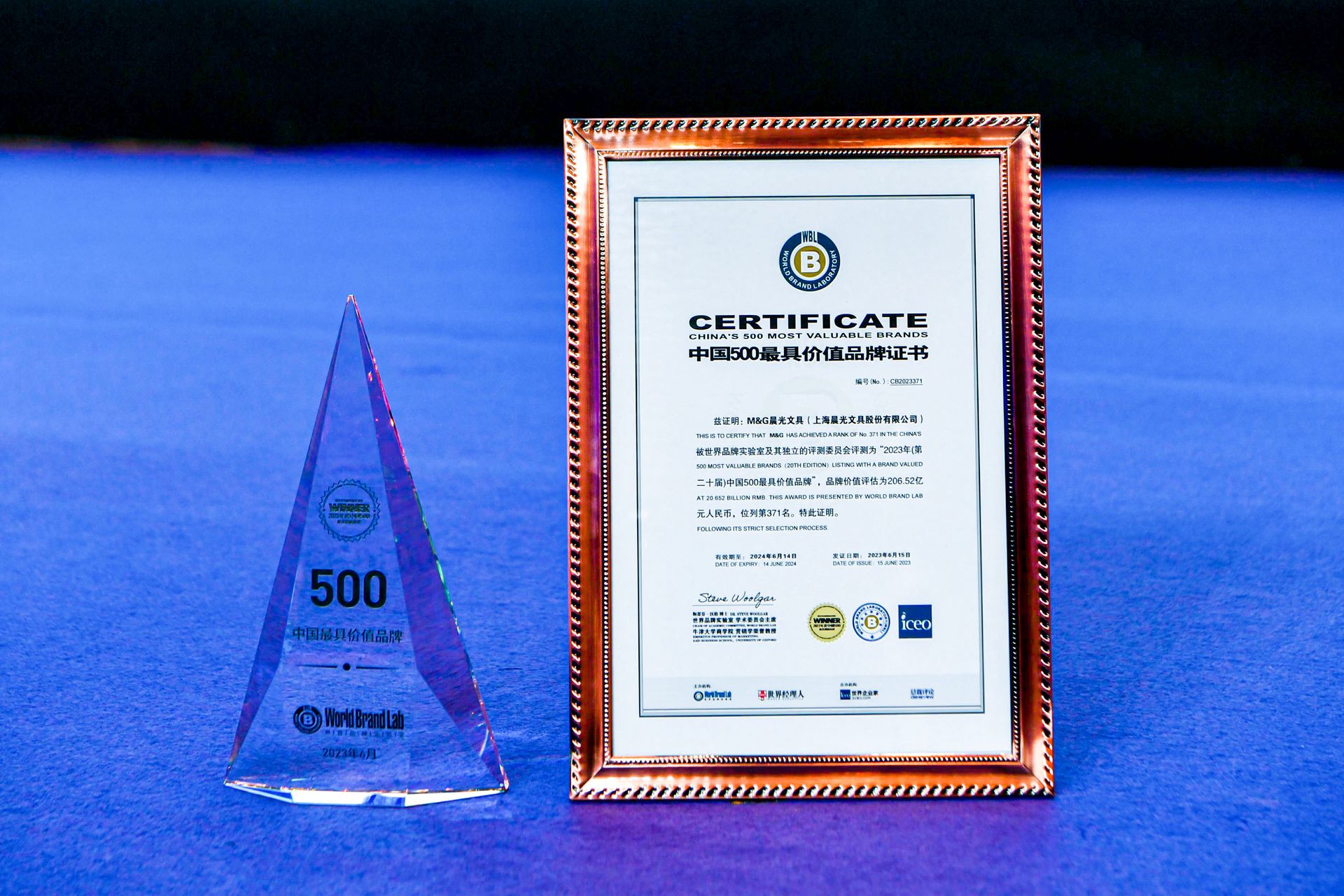 深耕行業三十余年,晨光憑借強大的品牌實力連續六年入選“中國500最具價值品牌”榜單,2023年更以高于去年27.6%的206.52億元品牌價值,榮登2023年“中國500最具價值品牌”第371名,再度刷新榜單佳績。
