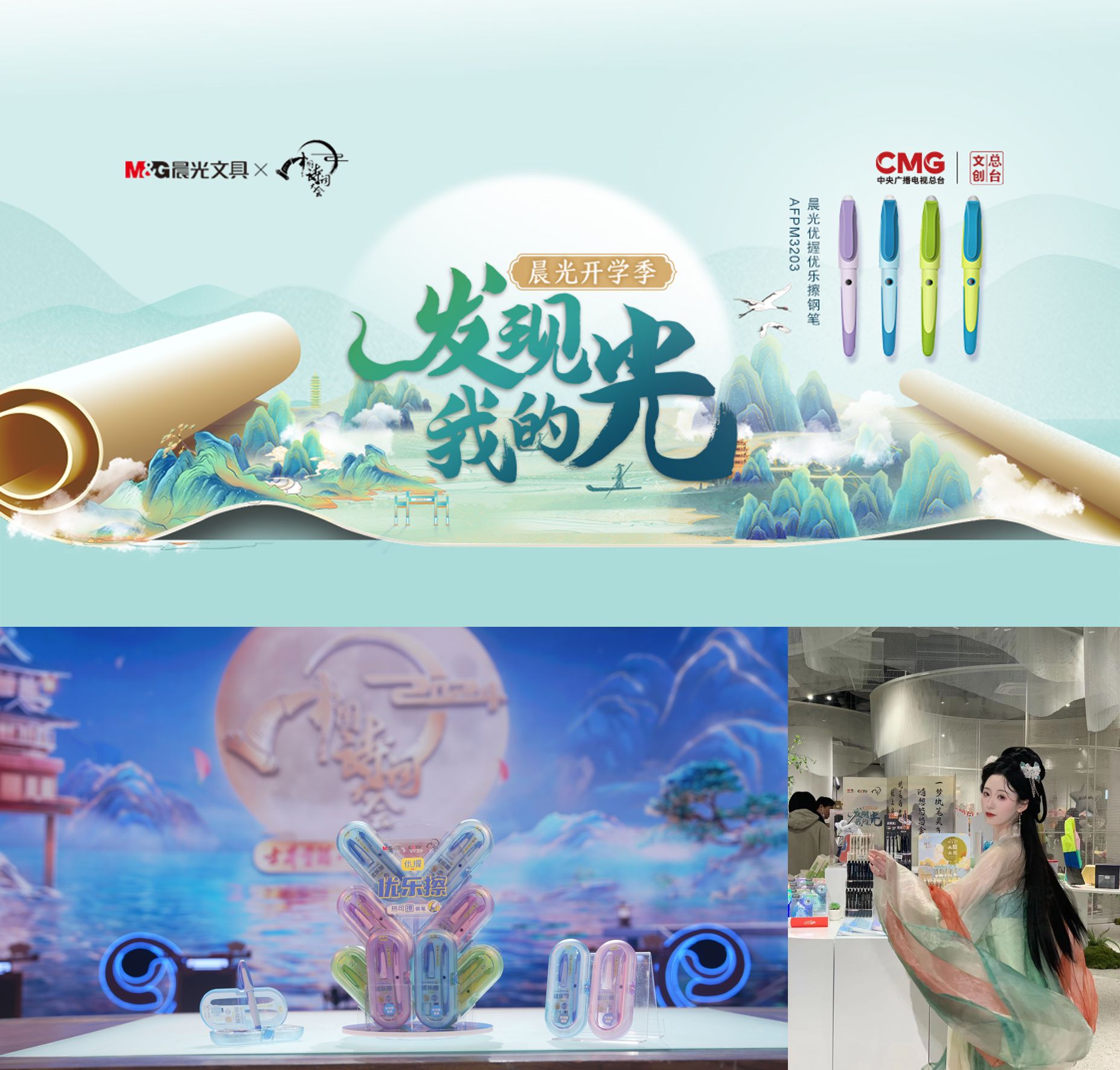 今年春季開學,晨光和CCTV《中國詩詞大會》推出聯名產品,不僅攜手康震老師為廣大學子送上了開學寄語,還在網紅文創地標上海徐家匯書院進行古風快閃及全民飛花令活動,用詩詞文化與年輕人積極溝通,借古風潮流和熱門文化節目提升產品體驗和情緒價值。