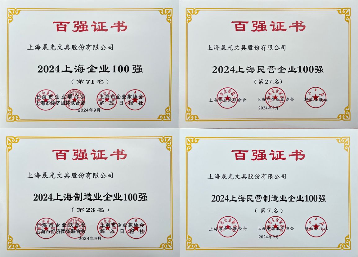 多年來,上海百強企業發展成效顯著,未來發展可期。作為上海百強企業之一,晨光將更加積極響應黨和政府號召,敢于攻堅克難、敢于有所作為,積極推進企業轉型升級,發展新質生產力,為上海打響’四大品牌’及上海經濟高質量發展做出新的貢獻!