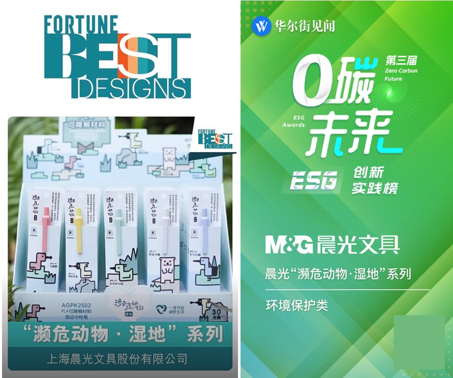 近期,晨光“瀕危動(dòng)物·濕地”系列案例還成功入選2024年《財(cái)富》中國(guó)最佳設(shè)計(jì)榜和第三屆「0碳未來(lái)·ESG創(chuàng)新實(shí)踐榜」,可持續(xù)實(shí)踐成果得到多方贊譽(yù)和認(rèn)可。