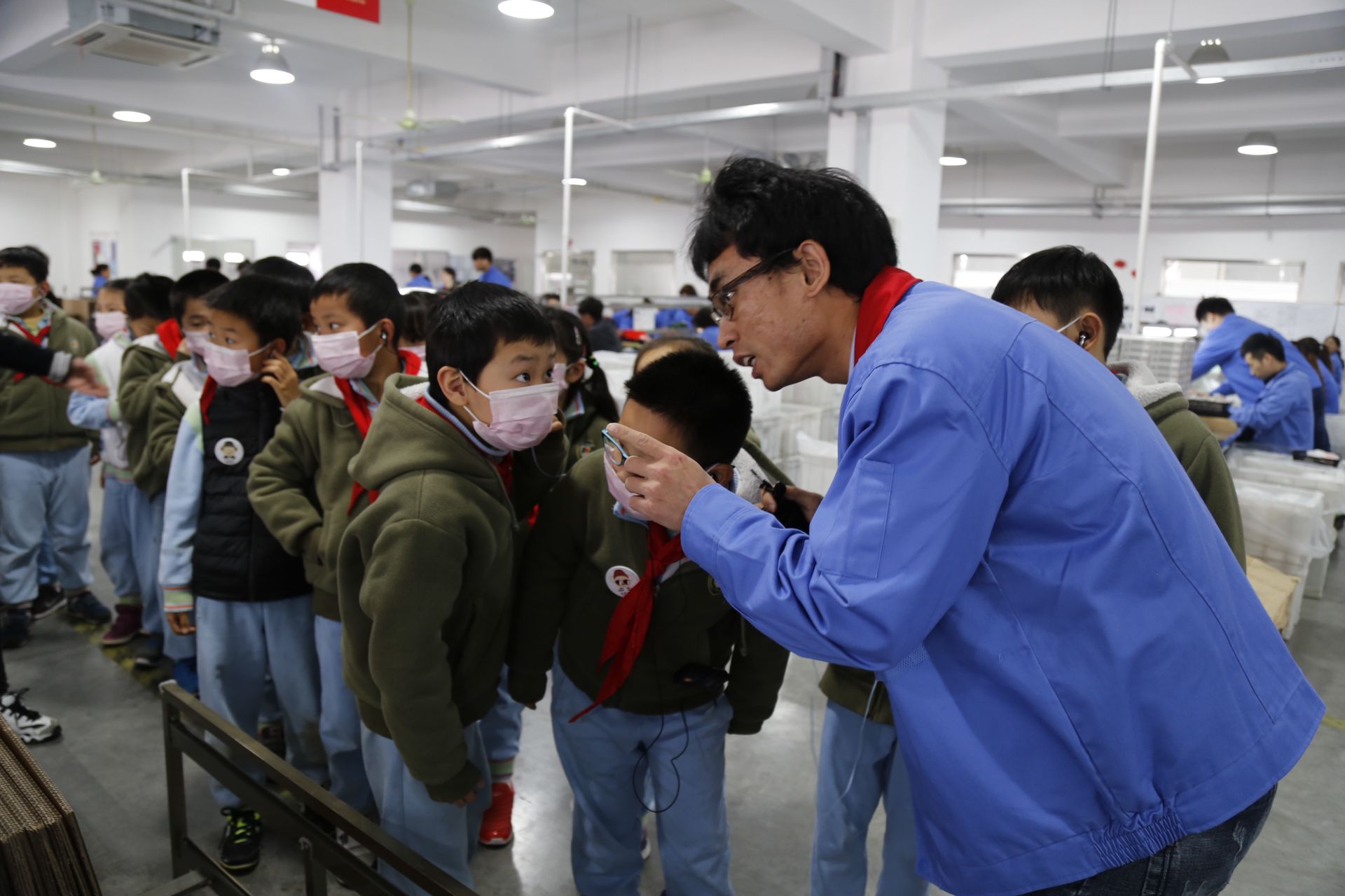平和學(xué)校的師生們,在晨光文具工作人員的帶領(lǐng)下,分別參觀了青村園區(qū)的制筆三廠手動組裝車間、機器自動組裝車間和全自動化立體倉庫。經(jīng)過講解員耐心的講解和互動,同學(xué)們在參觀過程中,逐漸了解了晨光一支筆的誕生過程。“一支小小的晨光筆,竟然有著這么復(fù)雜的制作工序”,完全依靠現(xiàn)代機器流水線作業(yè)的自動組裝過程,引起了同學(xué)們極大的興趣。在全自動化的立體倉庫,好奇寶寶們,紛紛尋找是誰在背后操控這些“機器人”準確地將貨物搬運到規(guī)定位置。