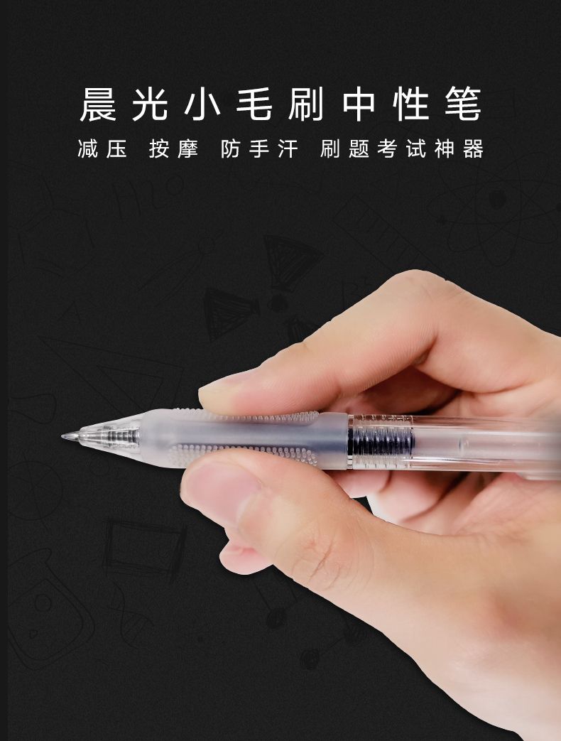 發布日期:2019-09-01暑假即將結束,你的作業寫完了嗎?開學之際,為應對學生黨的刷題考試壓力,晨光文具推出一款融匯靈感與創意的產品--“小毛刷”中性筆,專利“硅膠按摩點護套”,可有效減緩書寫疲勞、中指繭、手指出汗導致的不適感等問題。該款中性筆自帶“黑科技”光環,一經問世就迅速成為學生圈的熱門種草單品。