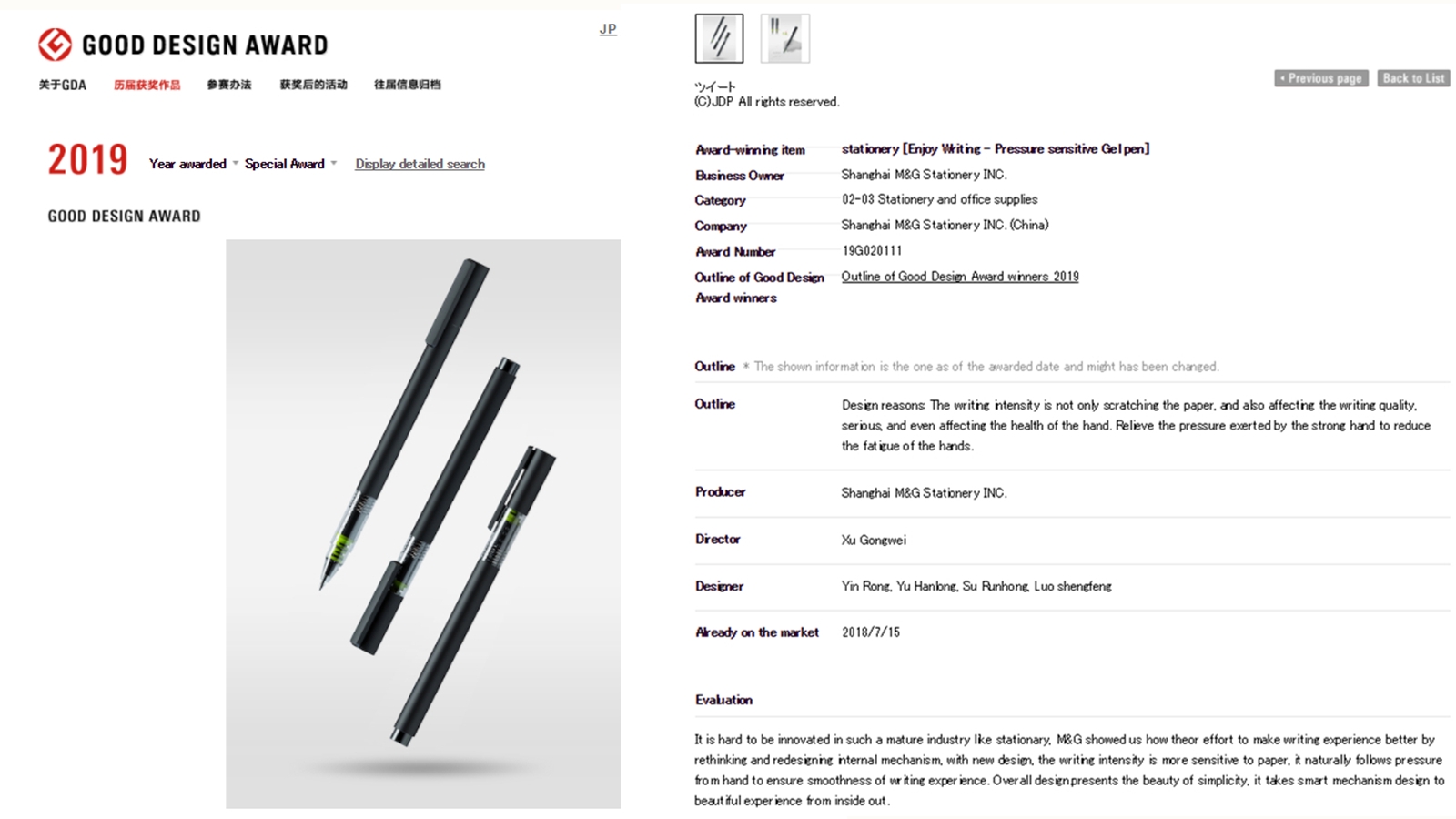 作為國內中性筆首例,晨光文具斬獲2019日本G-mark設計獎