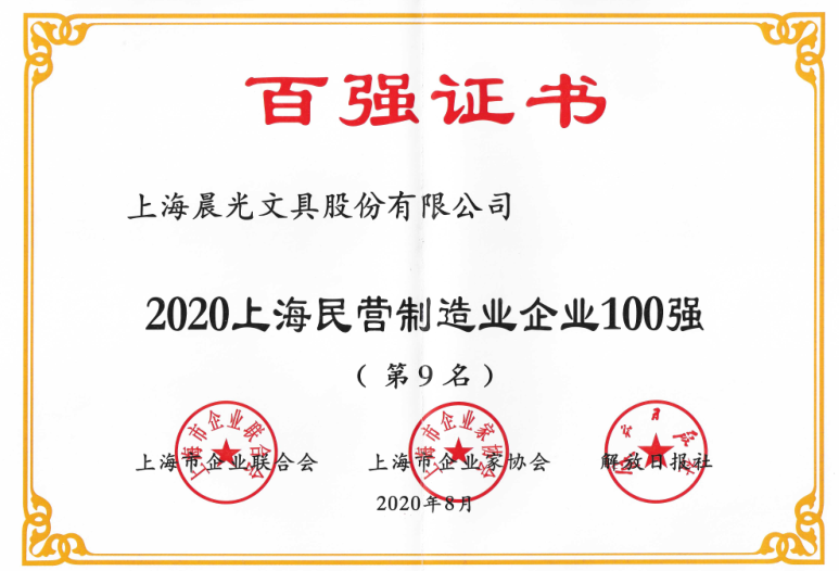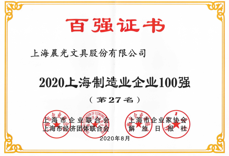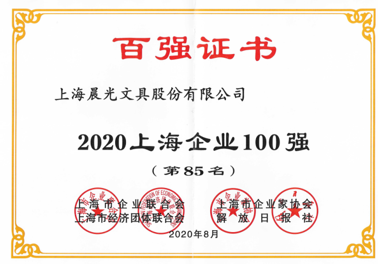 2020上海百強企業榜發布,晨光文具再登五項榜單!